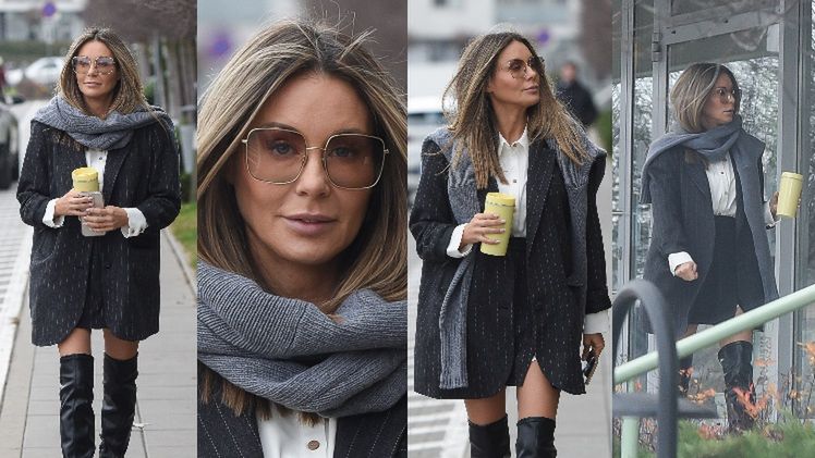 Po krótkim pobycie w Krakowie gwiazda zdążyła już wrócić do Warszawy. W poniedziałek paparazzi uwiecznili moment, jak 43-latka wysiada z białego BMW, po czym zmierza do kliniki medycyny estetycznej. Celebrytka nie byłaby sobą, gdyby nie zaprezentowała dopieszczonego w każdym calu look'u. Matka trójki dzieci miała na sobie białą koszulę, do której dobrała oversizową marynarkę i pasującą, prążkowaną spódnicę. Elegancką stylizację przełamały długie, skórzane kozaki z przymocowanymi przy kostkach łańcuchami.
