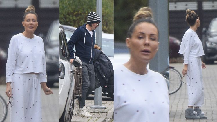 Małgorzata Rozenek w przykrótkiej piżamce w kropki i pluszowych kapciach żegna Radzia przed domem (ZDJĘCIA)