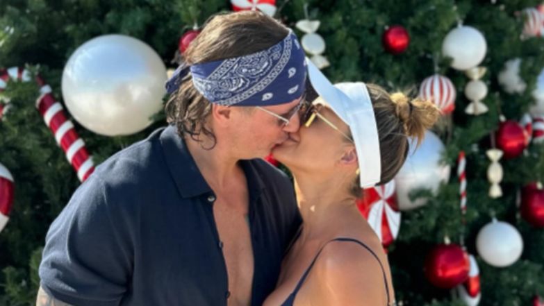 Małgorzata Rozenek całuje Radosława, pozując w bikini na tle choinki