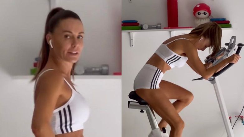 Małgorzata Rozenek zasuwa na rowerku stacjonarnym, zdradzając sekrety swojej cud-figury: "Trening dwa razy dziennie, 2000 kalorii..."