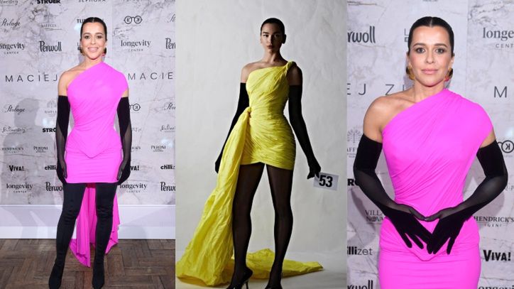 Czwartkowy pokaz Macieja Zienia ponownie natchnął Wędzikowską do wykazania się "kreatywnością" na czerwonym dywanie. Tym razem Malwina postawiła na różową kreację inspirowaną najnowszą kolekcją skompromitowanego domu mody Balenciaga, do której dobrała "legginsobuty" bliźniaczo podobne do modelu od francuskiej marki wartych 13 tysięcy złotych. Do asymetrycznej sukienki z długim trenem Malwina dopasowała duże, złote kolczyki, a na jej powiekach zagościł brązowy cień. Włosy stylistki zostały gładko zaczesane do tyłu.