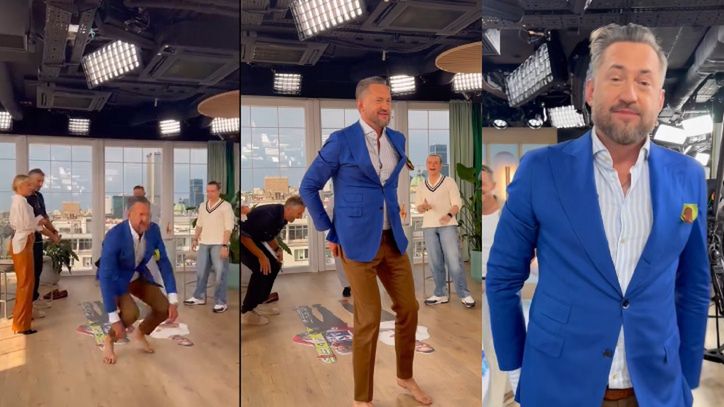 Jurora "Mam Talent!" wyraźnie rozpierała energia, którą 47-latek musiał jakoś spożytkować. Prezenter postanowił wykazać się tężyzną fizyczną i zapowiedział, że uda mu się dorównać Małyszowi, a nawet przeskoczyć jednego z najwybitniejszych rodzimych skoczków. Podobizna sportowca została położona na podłodze, a prezenter podjął wyzwanie.