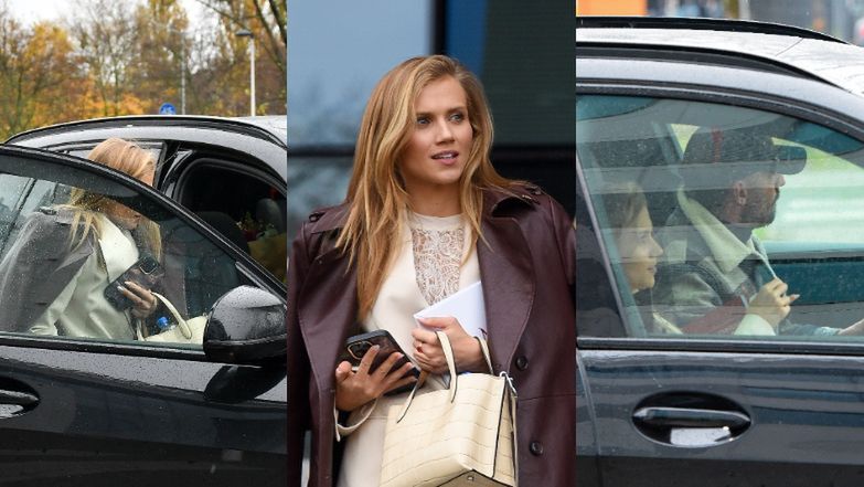 Agnieszka Kaczorowska i Maciej Pela opuścili już budynek sądu. Tancerka po przekroczeniu progu rozglądała się, trzymając w dłoni telefon. Okazało się, że czekała na nią miła niespodzianka. Z rozprawy rozwodowej odebrał ją obecny ukochany. Skryty za czapką Marcin Rogacewicz zatrzymał się na ulicy, by jego wybranka mogła zasiąść na miejscu pasażera. Po wejściu do auta 33-latka postanowiła jeszcze pożegnać się z obecną na miejscu mamą, której pomachała przez okno.