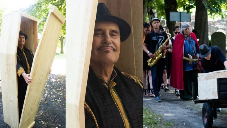 Marian Lichtman w szalu Fendi nagrywa teledysk NA CMENTARZU, a za trumną idzie Krzysztof Krawczyk Junior... (ZDJĘCIA)