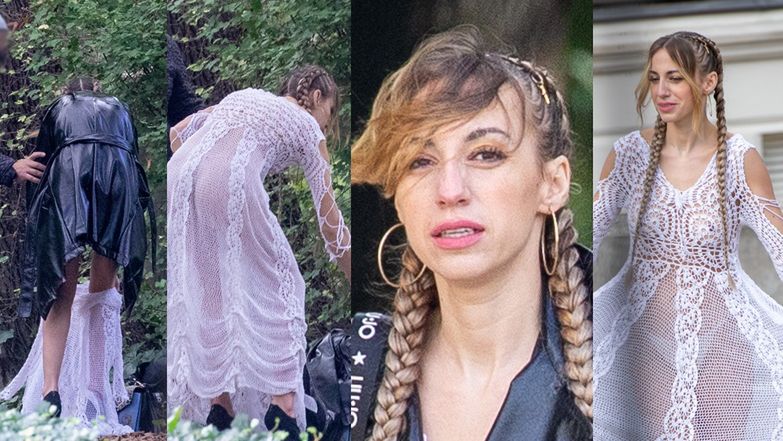 Marianna poszła z fotografem w krzaki i przebrała się w prześwitującą sukienkę, w której miała pozować do zdjęć.