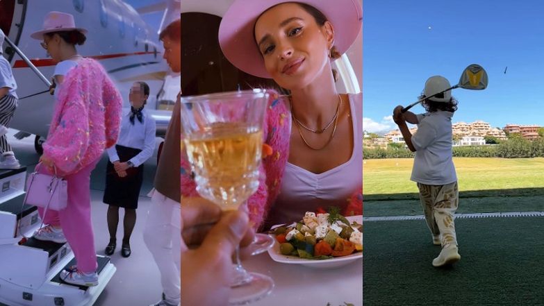 Marina podczas podróży prezentowała się w starannie dobranej stylizacji. Ubrana cała na różowo, w dresy, sweterek i kowbojski kapelusz, korzystała z przyjemnych chwil z rodziną. Rozumiemy, że w tej sytuacji, lecąc prywatnym samolotem, najbardziej przydaje się kapelusz, zwłaszcza w momencie posiłku.
