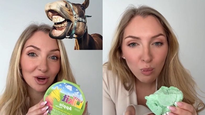 Czy trendy z TikToka właśnie zaszły za daleko? Influencerka Martirenti dla contentu zdecydowała się zjeść viralowy przysmak dla koni. Przesada?