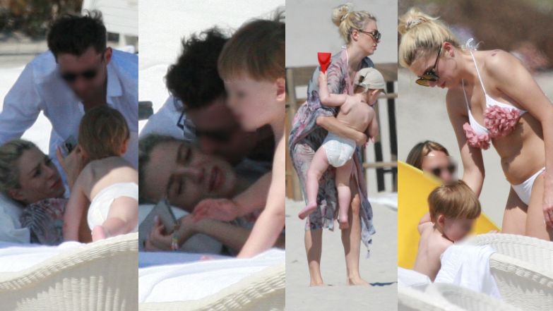 Byłą Jarka z lubym i synkiem sfotografowano na przyhotelowej plaży. Cała trójka relaksowała się na wygodnych leżakach, przeglądając zawartość smartfonów i łapiąc promienie słoneczne. Przyodziana w białe bikini z okazałymi kwiatami na biustonoszu Martyna dodatkowo zajmowała się latoroślą, którą z troską smarowała kremem z filtrem.
