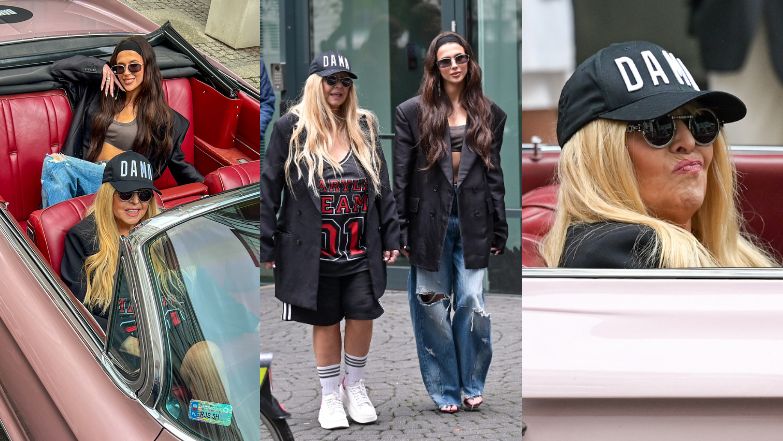 Maryla Rodowicz wyłoniła się z budynku w dość zaskakującej kreacji, w której elegancję zestawiono ze sportową estetyką. Niemal 80-letnia diwa przywdziała czarne szorty oraz szaro-czerwony T-shirt z napisem "MARYLA TEAM", na który zarzuciła over-size'ową marynarkę. Zadziwiający "look" uzupełniły ciemne okulary, sportowe obuwie, długie, białe skarpety oraz czapka-bejsbolówka z napisem "DAMA". Z kolei młodsza o sześć dekad koleżanka Maryli miała na sobie szerokie jeansy z dziurami, szary kusy top oraz obszerną, skórzaną marynarkę. Stylizację Roksany dopełniły modne okulary przeciwsłoneczne, szeroka opaska do włosów, a także sandałki na obcasie.