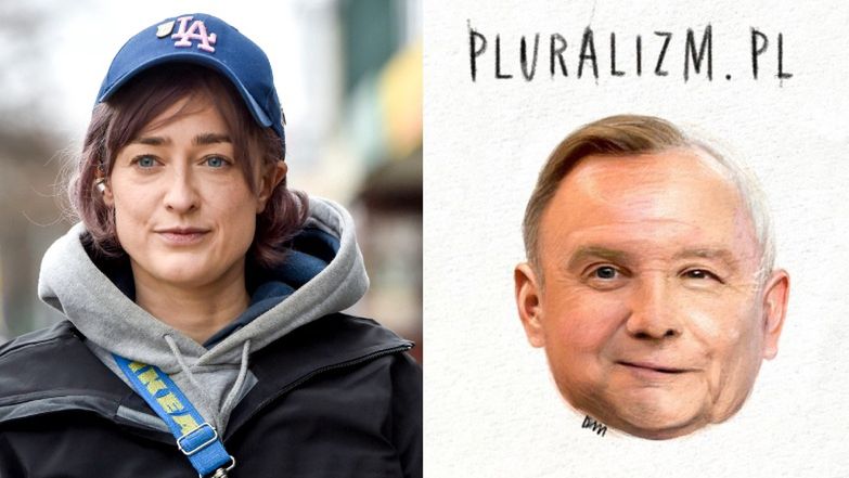 We wtorek na swoim profilu na Instagramie Matylda Damięcka pokazała nowe prace. Na pierwszej z grafik artystka połączyła twarze prezydenta Andrzeja Dudy i Jarosława Kaczyńskiego. Nad hybrydą umieściła napis "pluralizm.pl".