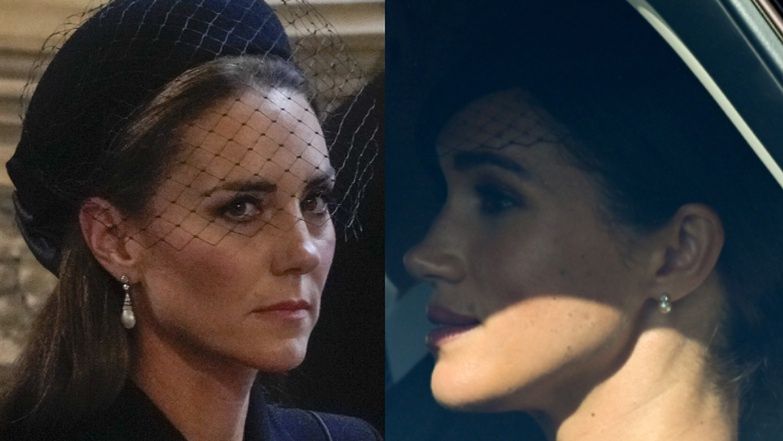 Oczywiście uwagę obserwatorów przyciągnęła też Meghan Markle, która ofiarnie wspierała swojego męża. Była księżna, już w świątyni, zajęła miejsce zaraz za Kate i Williamem, a fotografowie uchwycili moment, w którym głęboko uklęknęła przed trumną z ciałem Elżbiety II. Media zwróciły również uwagę na ozdoby w uszach Markle: żona księcia Harry'ego założyła perły, które w 2018 roku podarowała jej królowa Elżbieta II.