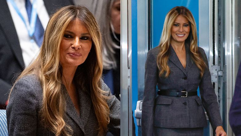 Jej obecność w nowojorskiej siedzibie Organizacji Narodów Zjednoczonych przyciągnęła uwagę nie tylko ze względów politycznych, ale też z uwagi na strój. Na tę okazję wybrała ciemnoszary, biznesowy garnitur - dopasowaną marynarkę zapinaną na trzy guziki z kieszeniami oraz ołówkową spódnicę za kolano. Stylizację uzupełniła czarnym, skórzanym paskiem z srebrną sprzączką i klasycznymi czarnymi szpilkami. Delikatny róż na paznokciach i mocniej podkreślone oczy dopełniły elegancki, wyważony wizerunek.
