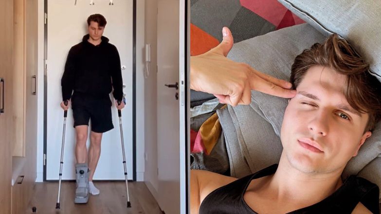Choreograf tańca towarzyskiego połączył się dziś ze swoimi obserwatorami na Instagramie, udostępniając krótki filmik, na którym porusza się po mieszkaniu o kulach i z założonym na stopę stabilizatorem stawu skokowego. Pospiesznie wyjaśnił zaistniałą sytuację.