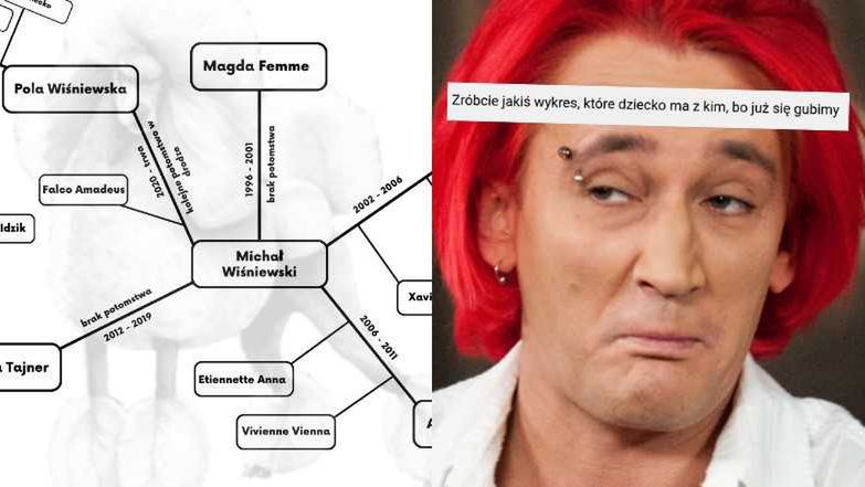 Trzeba przyznać, że w życiu uczuciowym jednego z najbardziej kochliwych celebrytów w rodzimym przemyśle rozrywkowym naprawdę trudno się połapać. W komentarzach Pudelkowiczów pod artykułami o czerwonowłosym gwiazdorze nie brakuje wątpliwości co do liczby żon i dzieci, których doczekał się w swojej karierze. Z tego względu postanowiliśmy przypomnieć Wam profesjonalny schemat, który stworzyliśmy przy okazji poprzedniej ciąży Poli. Mapka została już uaktualniona.