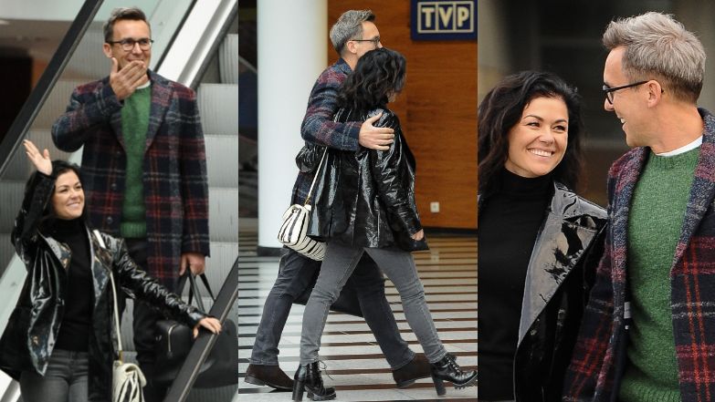 Zakochani zostali "przyłapani" podczas opuszczania gmachu TVP. Wyraźnie zadowoleni skończoną pracą, pomknęli w stronę wyjścia. Po drodze pozdrowili zgromadzone w studiu osoby i w objęciach pomaszerowali do auta. Co ciekawe, to Katarzyna usiadła za kierownicą.