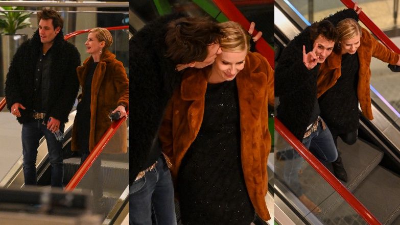 Podczas jazdy ruchomymi schodami aktorka położyła głowę na ramię partnera.