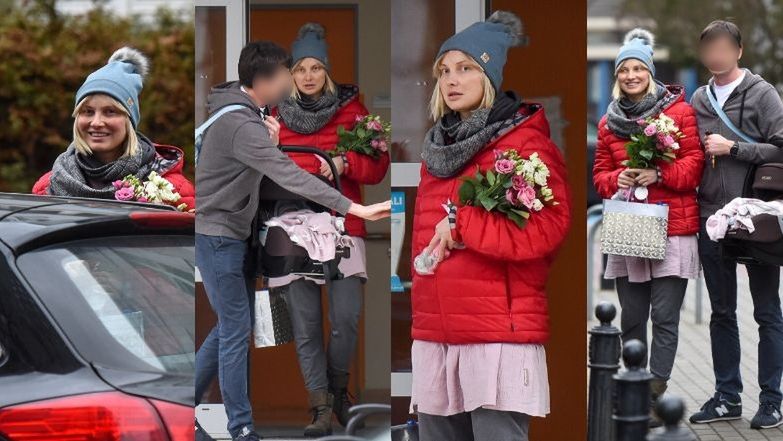 Świeżo upieczoną mamę z oddziału odebrał mąż, Mirosław Szpilewski. W trosce o dobre samopoczucie Joasi ukochany obdarował ją bukietem kwiatów.