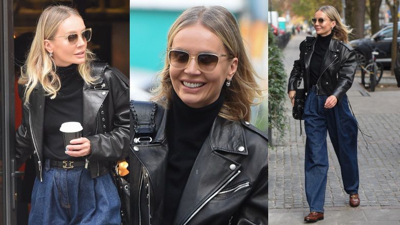 Ostatnia przechadzka prezenterki po Warszawie nie umknęła czujnym fotoreporterom, którzy udokumentowali wyjście Woźniak-Starak. Prezenterka wskoczyła w czarny golf, który połączyła z obszerną ramoneską. Celebrytka pomykała po warszawskich ulicach w jeansowych spodniach a'la alladynki. Tym razem zrezygnowała z ciężkich botków i postawiła na brązowe półbuty.