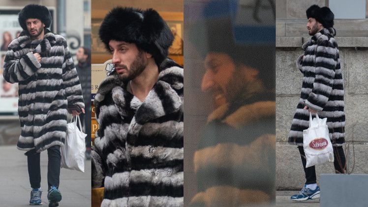 "Modny" Rafał Grabias z "Królowych życia" idzie po bułki w wielkiej futrzanej czapie i (naturalnym?) futrze (ZDJĘCIA)