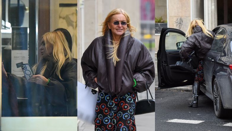 Tego dnia Olejnik zadawała szyku na warszawskich ulicach w stylizacji, która składała się obszernej, puchowej kurtki w kolorze brązowym, którą zestawiła ze spódnicą do kolana w etniczny wzór. Oczywiście miłośniczka mody nie zapomniała również o luksusowych dodatkach, których wartość można oszacować na kilkadziesiąt tysięcy złotych. Monika tym razem wybrała torebkę od marki Alaia za ponad 8,5 tysiąca złotych i masywne buty motocyklowe. Po zakupach 68-latka ruszyła do zaparkowanego nieopodal luksusowego BMW serii 5, które jest warte ok. 350 tys. złotych.