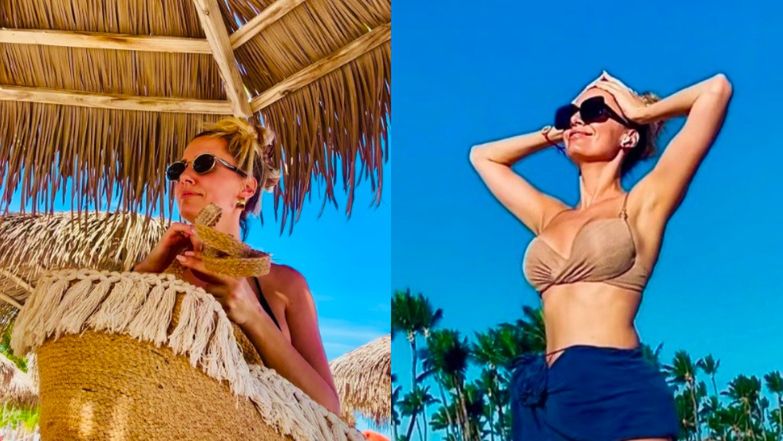 Prowadząca "Halo, tu Polsat" pozuje uśmiechnięta, wystawiając twarz do słońca, tańczy na plaży i biegnie w stronę morza. Po raz kolejny wyeksponowała też szczupłą sylwetkę. Na większości zdjęć ma na sobie tylko biustonosz i przewiązaną w pasie chustę plażową.