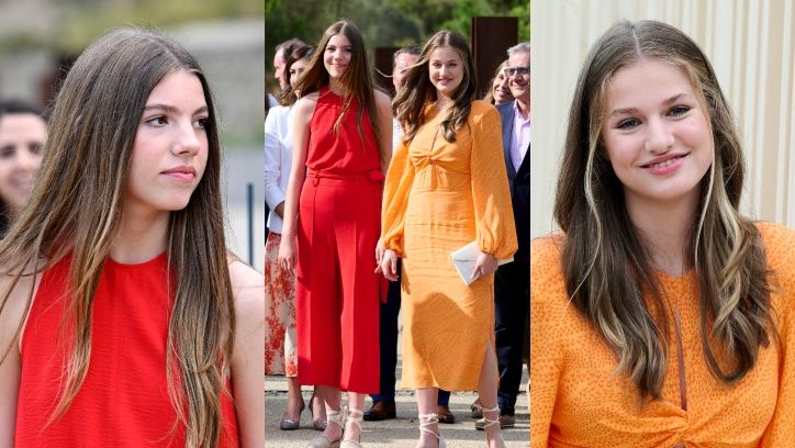 Jak na córki ikony stylu przystało, Hiszpanki prezentowały się podczas wyjścia elegancko, acz skromnie. Starsza z rodzeństwa miała na sobie pomarańczową, wzorzystą sukienkę z bufiastymi rękawami, do której dopasowała espadryle na koturnie. Jej siostra postawiła na czerwony kombinezon i niemal identyczne buty. Obie księżniczki rozpuściły długie włosy w kolorze ciemny blond, a na ich twarzach zagościł delikatny makijaż.