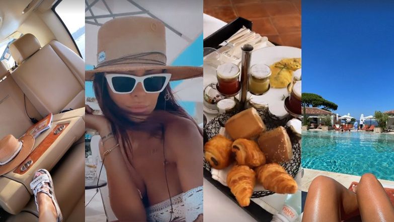 Modelka pokazała, że na śniadanie dostała croissanty i gofry z owocami, a czas mija jej na opalaniu się i kąpielach w basenie z lazurową wodą.