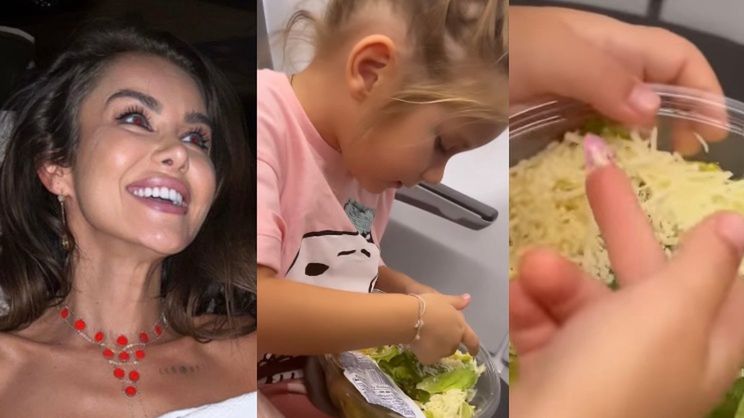 Celebrytka pokazała, że jej pociecha postanowiła używać tipsa zamiast łyżeczki, pałaszując sałatkę w serem. Pomysłowa dziewczynka wydłubywała interesujące ją kąski i była ewidentnie zadowolona z własnej rezolutności.