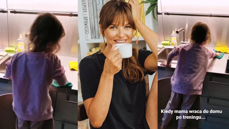 Po morderczym treningu celebrytka "przyłapała" uczynną 3-latkę na sprzątaniu w kuchni. Jesteście pod wrażeniem?
