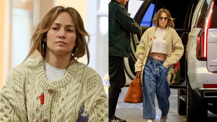 53-latka prezentuje się fenomenalnie i wciąż może pochwalić się gładką i nieskazitelną cerą. Lopez podczas wizyty w biurze była ubrana w wygodną stylizację. Miała na sobie pistacjowy sweter z jej inicjałami wyhaftowanymi na rękawie. Pod spód założyła klasyczny biały T-shirt. Nie obyło się też bez złotych, okrągłych kolczyków.