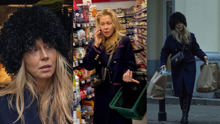 Tego dnia aktorka miała na sobie elegancki, granatowy płaszcz, rzucająca się w oczy futrzaną czapkę, spódnicę i czarne botki. Miejski "look" uzupełniała torebka Celine za około 18 tysięcy złotych. Aktorka zaprezentowała się na mieście w wydaniu saute, rezygnując z makijażu.