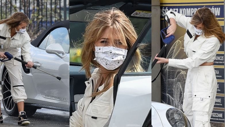 Celebrytka własnoręcznie zadbała o to, by jej cenne auto lśniło. Zmagania z myjką ciśnieniową Marceliny śledzili czujni paparazzi.