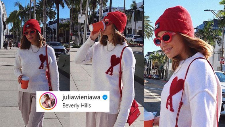 Pobyt w USA to dla Wieniawy również okazja do polansowania się w modnych stylówkach. Celebrytka wybrała się ostatnio na spacer po Beverly Hills ubrana w sweterek Ami Paris za ponad 1,5 tysiąca złotych. Na ramię zarzuciła czerwoną torebkę Jacquemus za około 3,5 tysiąca złotych, a oczy skryła za okularami Loewe za 1450 złotych. Miejską stylizację obowiązkowo uzupełniła kubkiem kawy na wynos.
