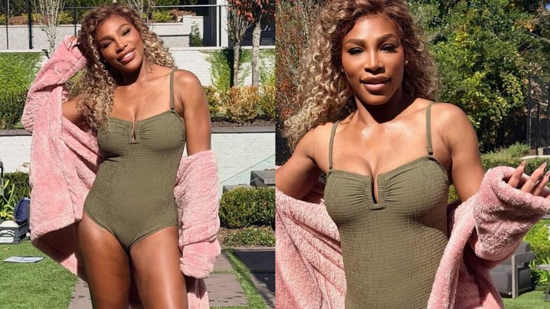Serena Williams w stroju kąpielowym i puchatym szlafroku pokazuje odmienione ciało