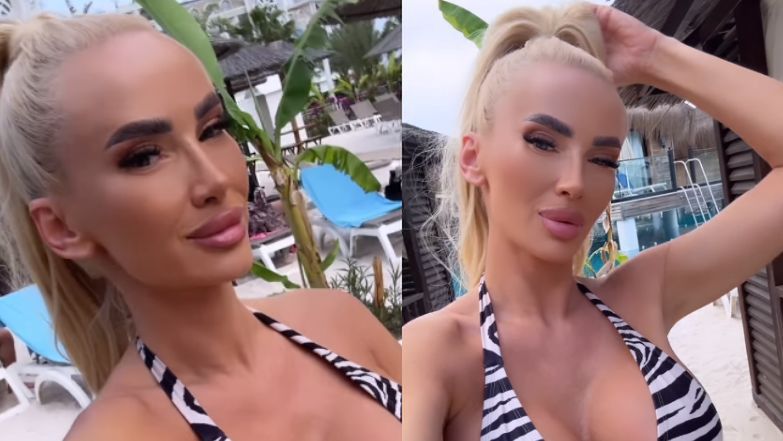 Na filmikach z wyjazdu, które Macudzińska opublikowała na InstaStories, można zobaczyć celebrytkę w dwóch kompletach bikini - w "zeberkę" oraz w metalicznym niebieskim. Celebrytka dumnie prezentuje wyćwiczone i "poprawione" przez chirurga ciało, przechadzając się po hotelu i wypoczywając nad basenem.