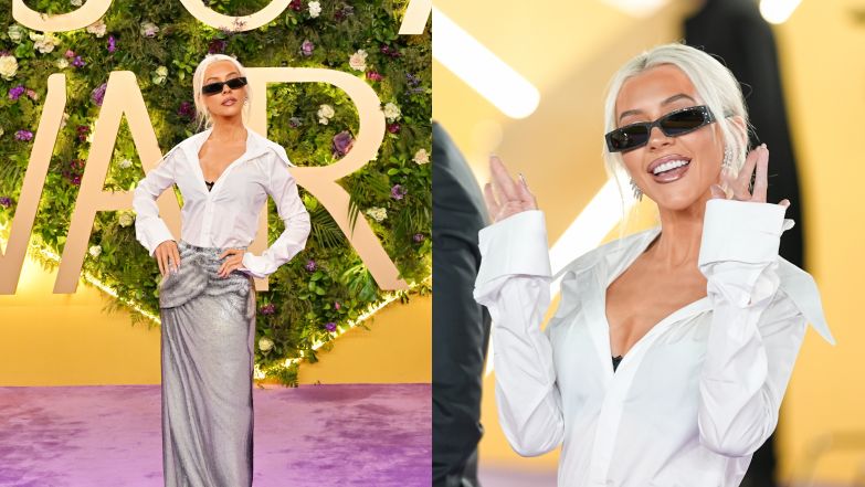 Odmieniona piosenkarka zaprezentowała się na ściance podczas gali Joy Awards 2025 w zestawie, który składał się z błyszczącej spódnicy do ziemi i eleganckiej białej koszuli. Swoją stylizację uzupełniła m.in. wąskimi, ciemnymi okularami przeciwsłonecznymi czy błyszczącymi kolczykami.