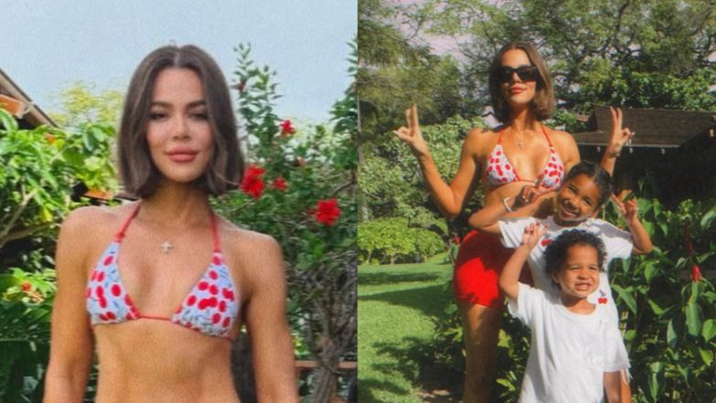 ODMIENIONA Khloe Kardashian prezentuje wyrzeźbione ciało w bikini, pozując z dziećmi