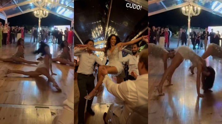 To jeszcze nie wszystko. Po wykonaniu z Mglejem pierwszego tańca w rytm ballady "Young and Beautiful" Lany del Rey, pana młodego czekała jeszcze kolejna wyjątkowa atrakcja. Roxie posadziła ukochanego na krześle i odtańczyła dla niego zmysłowy taniec w asyście dwóch tancerek. Na udostępnionym przez Maffashion nagraniu widzimy, jak 19-latka wije się wokół męża w białej mini z głębokim, błyszczącym dekoltem, kręcąc sensualnie biodrami i posyłając lubemu zachęcające uśmiechy.