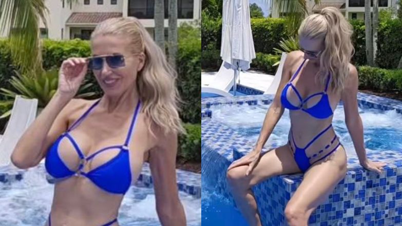 51-latka wciąż może się pochwalić zgrabną sylwetką, którą, jak sama twierdzi, zawdzięcza w głównej mierze diecie roślinnej. Celebrytka często chwali się na Instagramie ujęciami w bikini, tak też było i tym razem. Korzystając ze słonecznej pogody, wskoczyła w skąpy, niebieski kostium i wyginała się w nim przy basenie. Taka to pożyje?