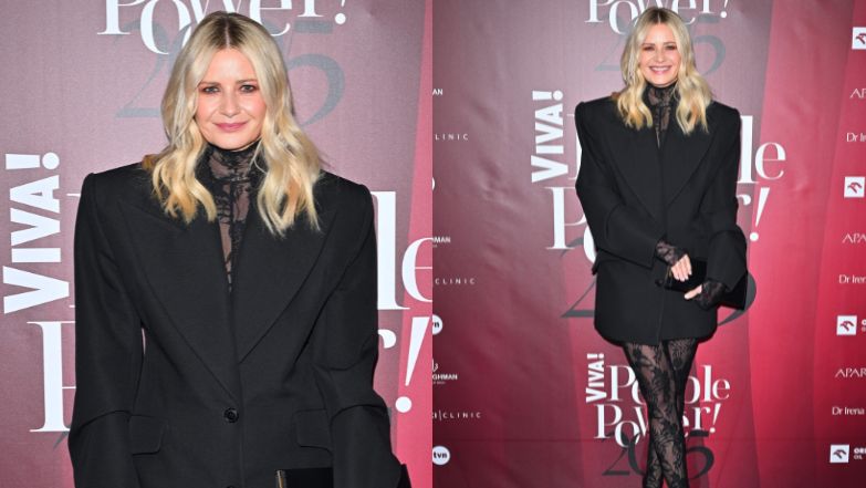 Małgorzata Kożuchowska pojawiła się w środę na gali rozdania nagród magazynu "Viva!". Z tej okazji aktorka postawiła na monochromatyczny, czarny look. Pozowała na ściance ubrana w koronkowe rajstopy i bluzkę, do których dopasowała marynarkę z szerokimi ramionami.
