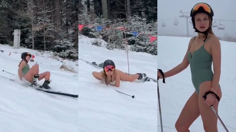 Odziana w strój kąpielowy Joanna Moro zaliczyła bolesny UPADEK na stoku narciarskim