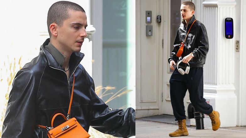 Dwa dni później paparazzi znów przyuważyli Chalameta. Tym razem bez ukochanej. 29-latek maszerował samotnie ulicami Nowego Jorku. Uwagę zwracał jego wygląd. I to nie za sprawą świeżo ogolonej głowy. Gwiazdor postawił tego dnia na wyjątkowo oryginalną stylizację. Miał na sobie czarne spodnie, skórzaną kurtkę i jesienne buty za kostkę. Przez ramię przewiesił zaś pomarańczową torbę. Okazuje się, że Timothee tak jak Kylie ma słabość do luksusowej galanterii. Zdecydował się on bowiem na dodatek w postaci wartej około 55 tysięcy złotych torebki Hermes Mini Kelly.