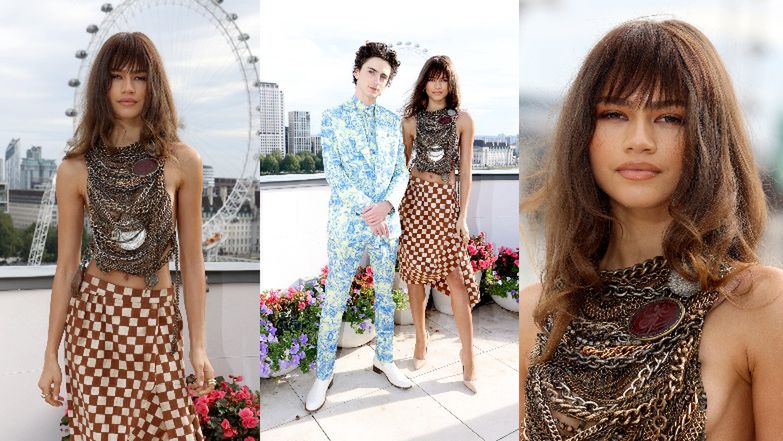 Olśniewająca Zendaya w "łańcuszkowym" topie Vivienne Westwood promuje nowy film z Timothéem Chalametem (ZDJĘCIA)