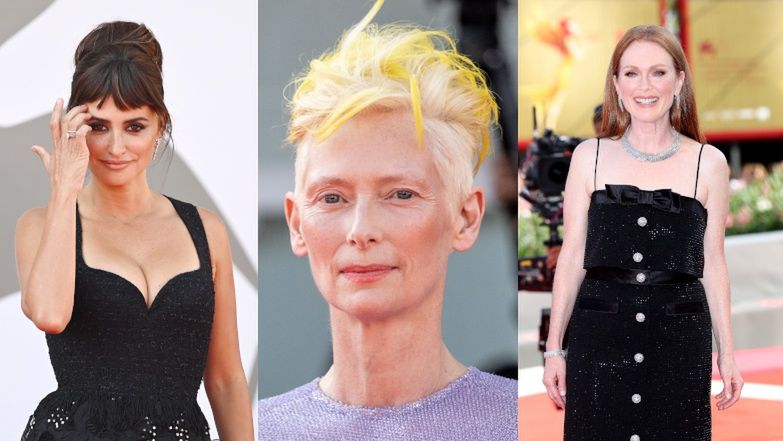 Oscarowe aktorki na premierze "Odwiecznej córki" w Wenecji: Tilda Swinton z barwami Ukrainy na głowie, Julianne Moore w Miu Miu, Penelope Cruz w Chanel (ZDJĘCIA)