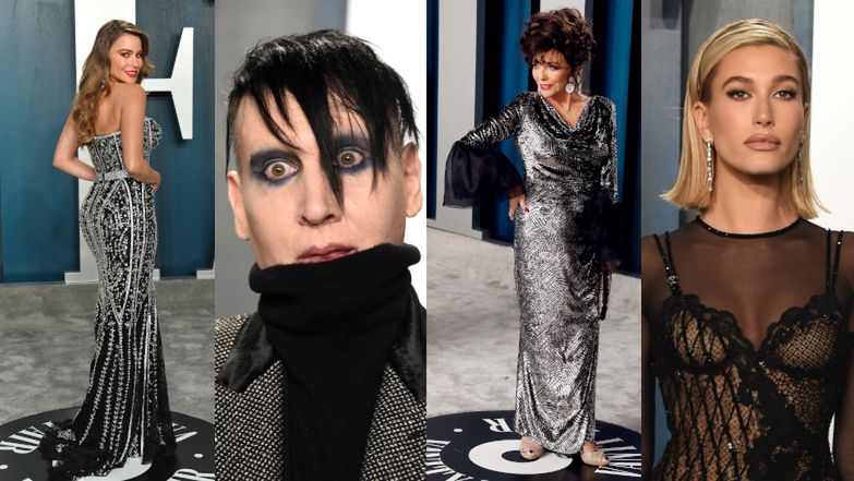 Na szarym dywanie przyjęcia mogliśmy podziwiać między innymi niczym wyjętą z planu Dynasii Joan Collins, zabójczą figurę Hailey Bieber, muśniętą słońcem Jessikę Albę, Sofię Vergarę z przystojnym mężem oraz mrocznego Marilyna Mansona.