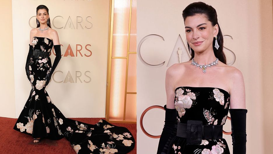 Anne Hathaway pojawiła się na ceremonii wręczenia Oscarów po 12 latach nieobecności. Swój powrót przypieczętowała przejściem po czerwonym dywanie w obłędnie długiej, efektownej sukni z haftowanymi kwiatami. Zasłużyła na tytuł najlepiej wystylizowanej gwiazdy wieczoru?