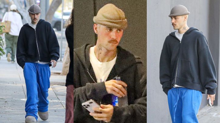 Osowiały Justin Bieber ze zrolowaną pończochą (?) na głowie włóczy się samotnie po mieście