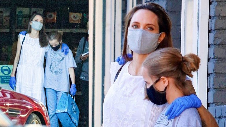 Ostrożna Angelina Jolie w maseczce i rękawiczkach robi zakupy z córką (ZDJĘCIA)
