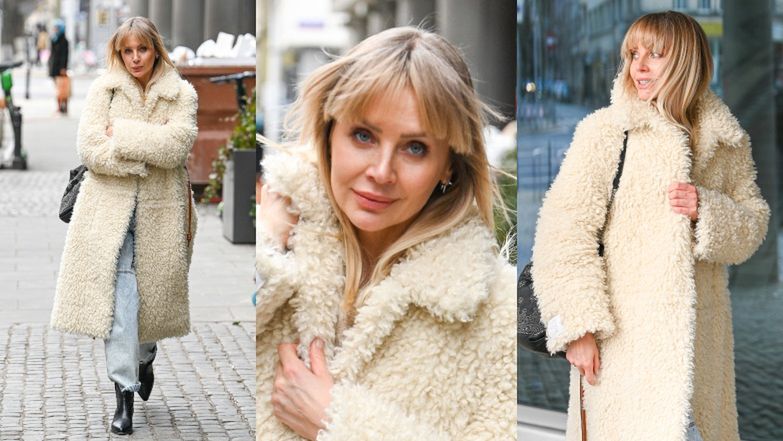 Agnieszka Woźniak-Starak po raz kolejny zanurkowała do szafy po swój ulubiony płaszcz z "owieczki". Na mankiecie dało się spostrzec napis informujący, że przy powstawaniu futerka nie ucierpiało żadne zwierzę.