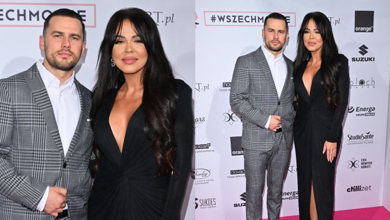 Papużki-nierozłączki Sylwia Bomba i Grzegorz Collins zameldowali się na gali Wszechmocne 2024. Suknia z rozcięciem robi wrażenie
